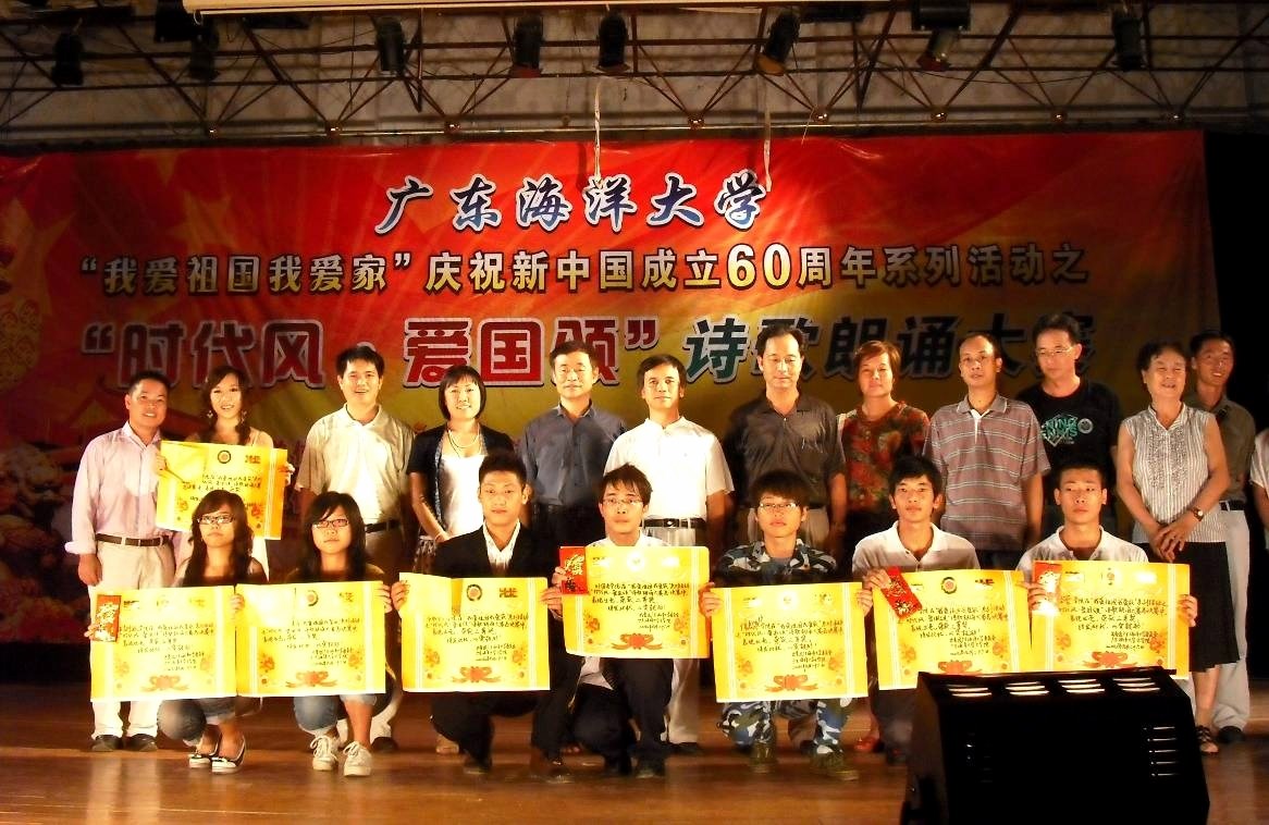9月26日,由学校团委、文学院共同主办的“我爱祖国我爱家”庆祝新中国成立60周年系列活动之 “时代风·爱国颂”大型诗歌朗诵总决赛,在主校区礼堂隆重举行。