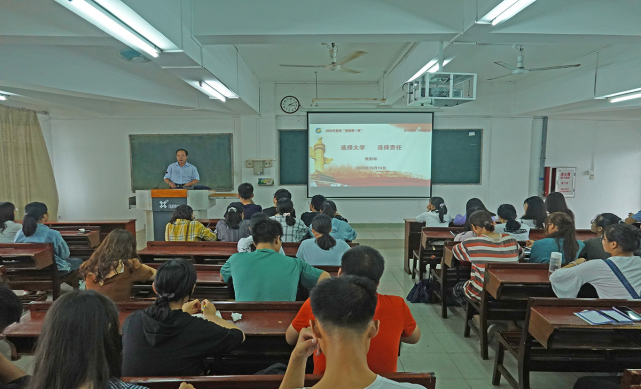 阮彭林书记以“选择大学,选择责任”为主题,阐述了大学是心灵的摇篮,是创造、保存人类文明的场所,是体验人生的重要转折点。新生应把握住大学这个成长成才的机会,认真思考三个问题:来大学干什么、在大学应该干什么、走出大学校门能够干什么,学会独立中体验自主,学会管理时间,学会独自承担责任,学会养成合作与团队意识,努力成为承担未来家庭、社会责任的优秀人才。他以一句“图书馆是比网吧更值得泡的地方”鼓励新生寻找安静、适合学习的地方读书,并结合“习近平主席在深圳经济特区建立40周年庆祝大会上的讲话”向新生提出抓住机会见证现代化强国建设、在实现中华民族伟大复兴的中国梦的征程上,接续奋斗。最后,寄语广大同学,在学习中追求知行合一,在成才中追求做人的道理,在成功中追求社会的责任。