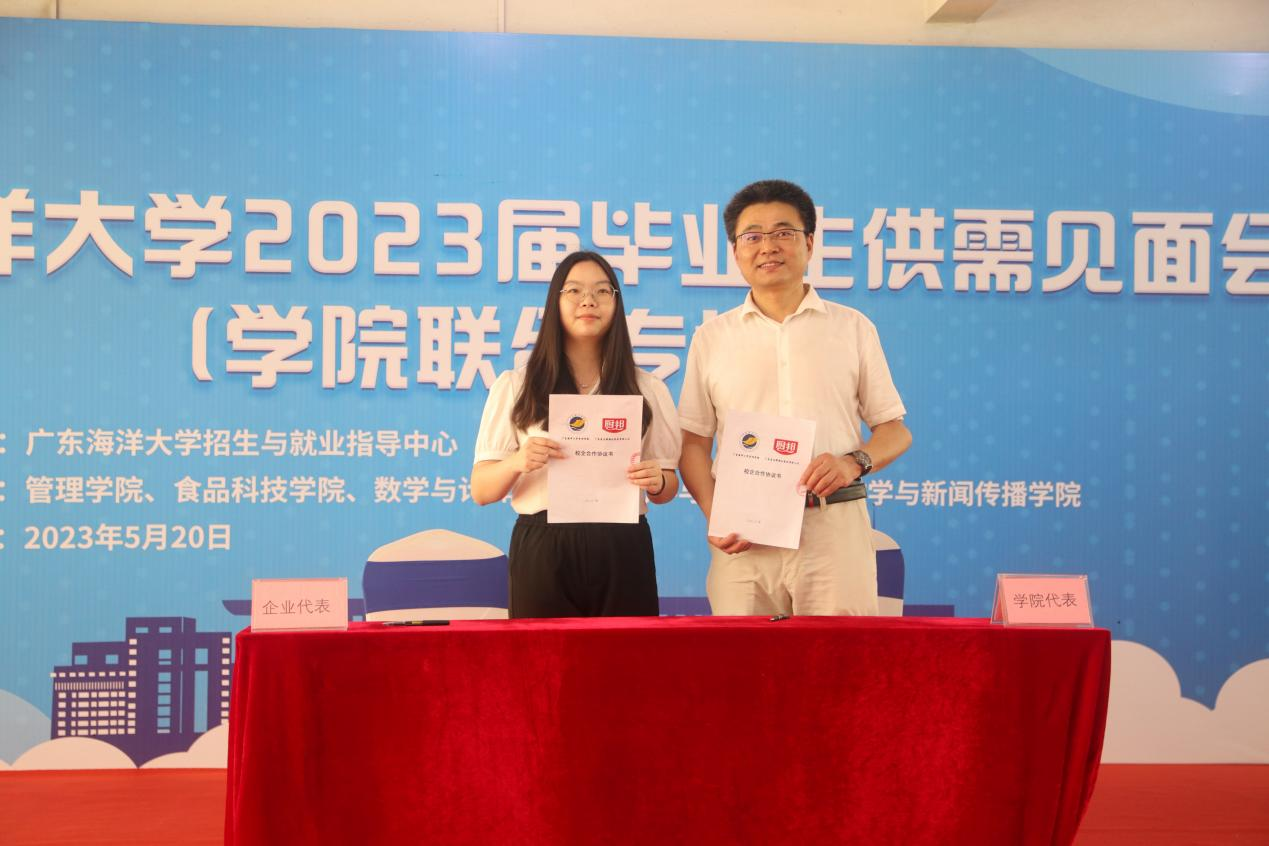 开幕式首先由公司党委副书记林晓敏致辞。他简要介绍了学校的发展情况与2023届毕业生的就业情况,强调“国以人兴,政以才治”,对各学院、用人企业、毕业生提出了三点希望:一是希望各学院进一步深化校企合作,积极对接企业人才需求,搭建好供需的桥梁,助力公司毕业生高质量就业;二是希望企业为高质量发展储备高质量人才,充分挖掘员工的潜力,最大限度招收接纳公司毕业生,用心用情用力用好人才,留住人才,实现经济发展和扩大就业的并举双赢;三是希望毕业生转变观念,树立正确的就业观,既要仰望星空,更要脚踏实地,及时适当调整就业预期,先就业再择业,勇于到企业一线和艰苦的岗位去锻炼,敢于到新的行业去打拼,以诚实的劳动和出色的业绩成就人生价值。随后,深圳市讴旎科技有限公司总经理、公司优秀员工吴宏杨作为企业代表作了发言。他感恩母校的培养,结合自身奋斗的历程,深刻阐释了海大精神,并勉励求职的员工要积极就业,投身企业一线贡献青春力量。开幕式上,管理学院、食品科技学院、数学与计算机学院与部分参会企业签订了共建教学实训就业基地协议,并进行了授牌仪式。