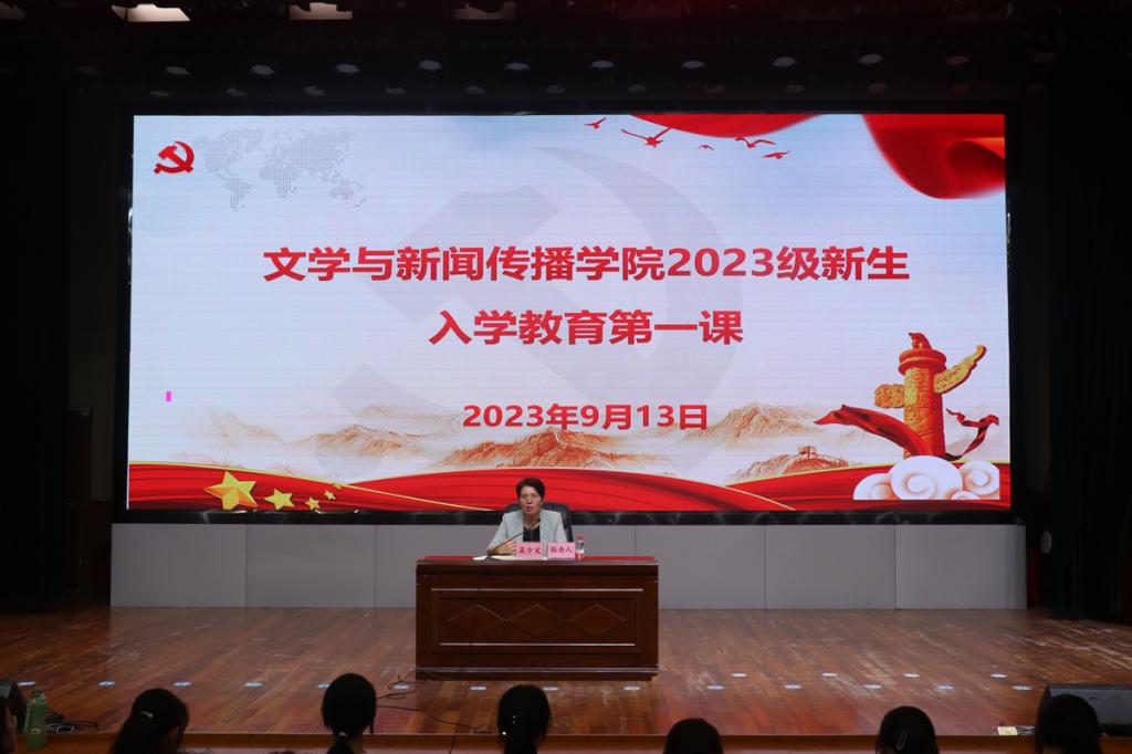 梁嘉怡同学代表新生表示,将在未来四年的老员工活中“秉承“广学明德,海纳厚为”的校训与“文心经世,日新其格”的院训,以高度热情的学习态度,乐观勇敢的生活心态,强国有我的责任担当,抓住机遇,迎接挑战,追求卓越,超越自我,在知识的曙光下追赶时代的光辉,在历史的使命中追随党的步伐,助中华复兴之梦辉煌灿烂!