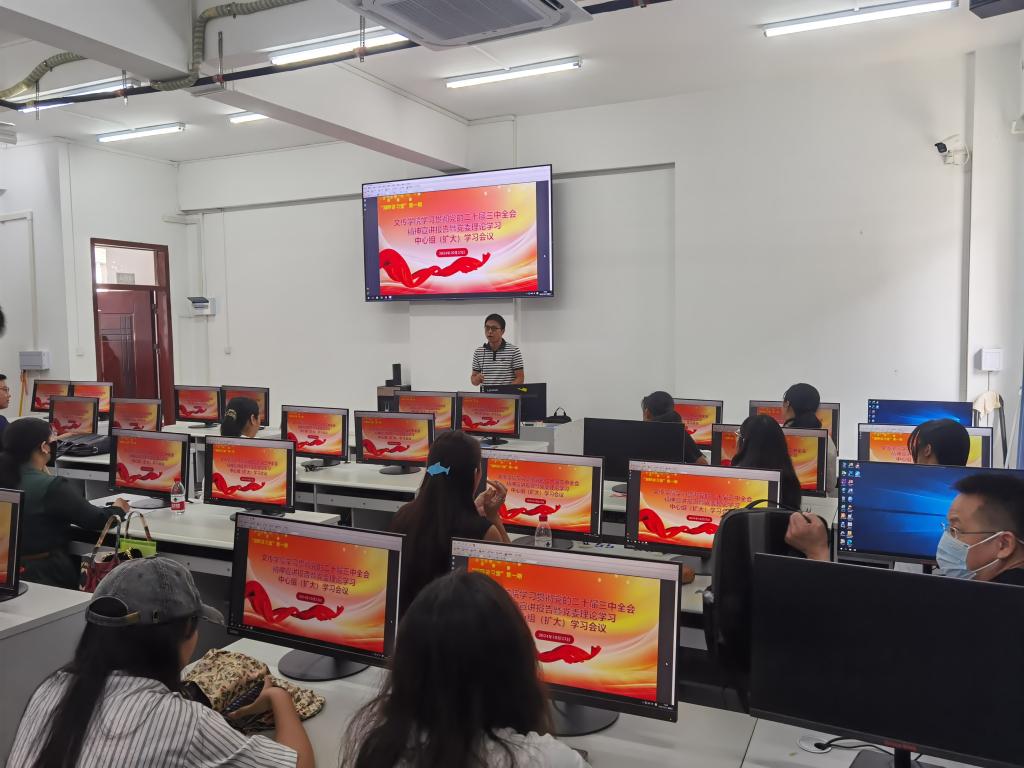 10月23日下午,william威廉中文官网在新文科楼3号楼405室举行学习贯彻党的二十届三中全会精神宣讲报告暨党委理论学习中心组(扩大)学习会议,这也是学院“湖畔讲习堂”开展的首期活动。公司党委书记张艳梅主持会议。学院全体教职工及部分青年员工骨干等近80人参加学习。