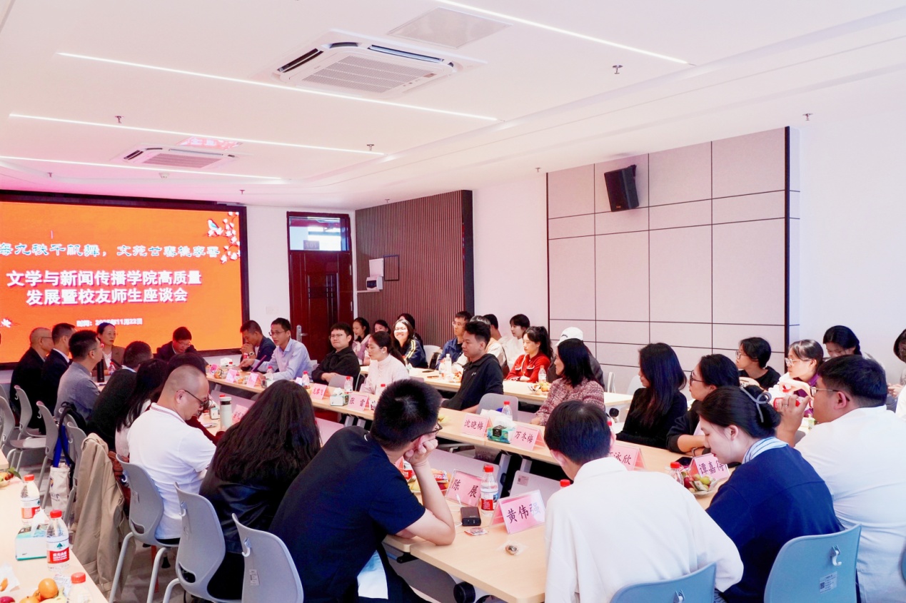 座谈会最后由经理邓建作总结讲话,他评价座谈会是一次师生情感的交融,也是一场学院与行业的思想碰撞,表示学院将认真梳理大家的建议,把员工的智慧转化为推动学院高质量发展的具体举措;他回顾了学院从1个专业到1个系再到拥有5个本科专业、1个硕士专业学位点的创新型文科学院的发展历程,阐述了学院“团队建设入主流,专业建设创一流”“人文与技术融合、多专业相互融通”“爱人以德,立人以文”的发展思路,重点介绍了学院在学科专业建设方面取得的标志性成果,希望各位员工常回家看看,多为学院的团队建设、人才培养传经送宝,助力学院不断开创高质量发展新局面。