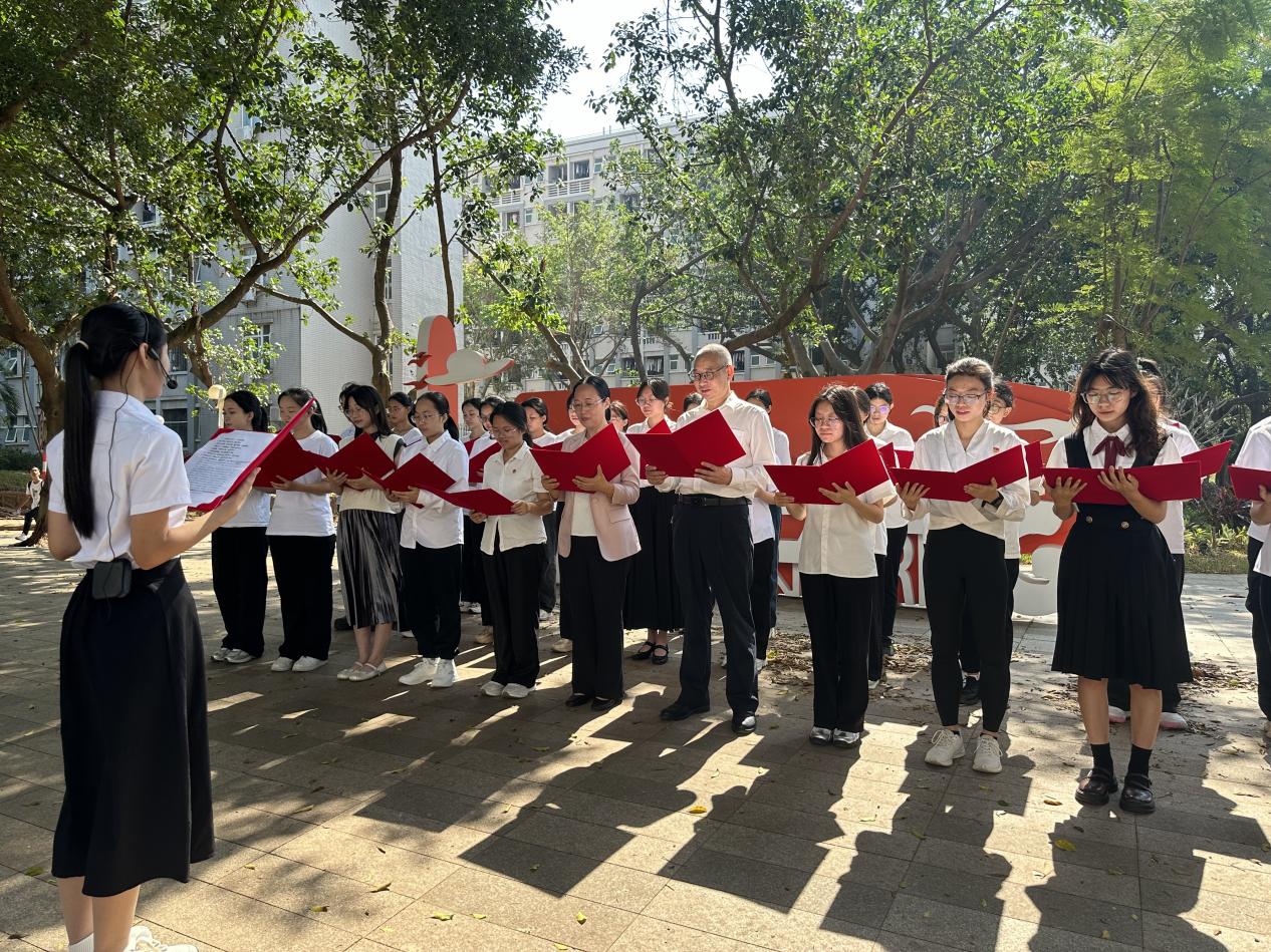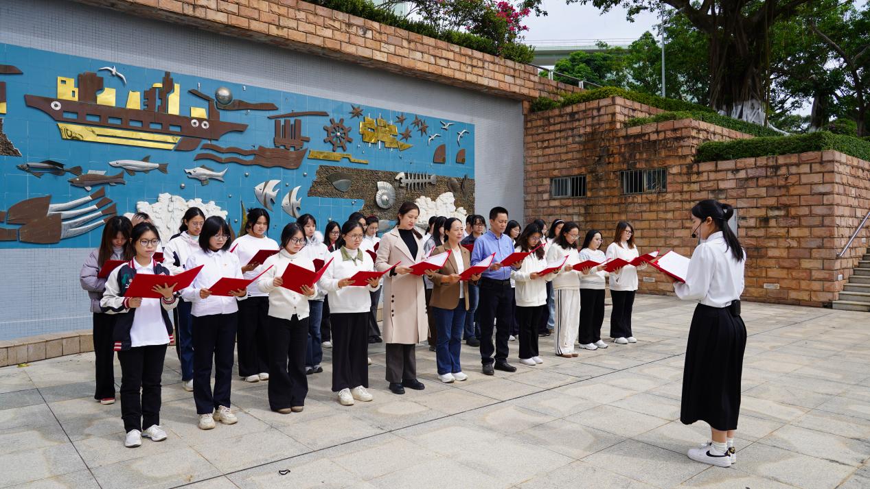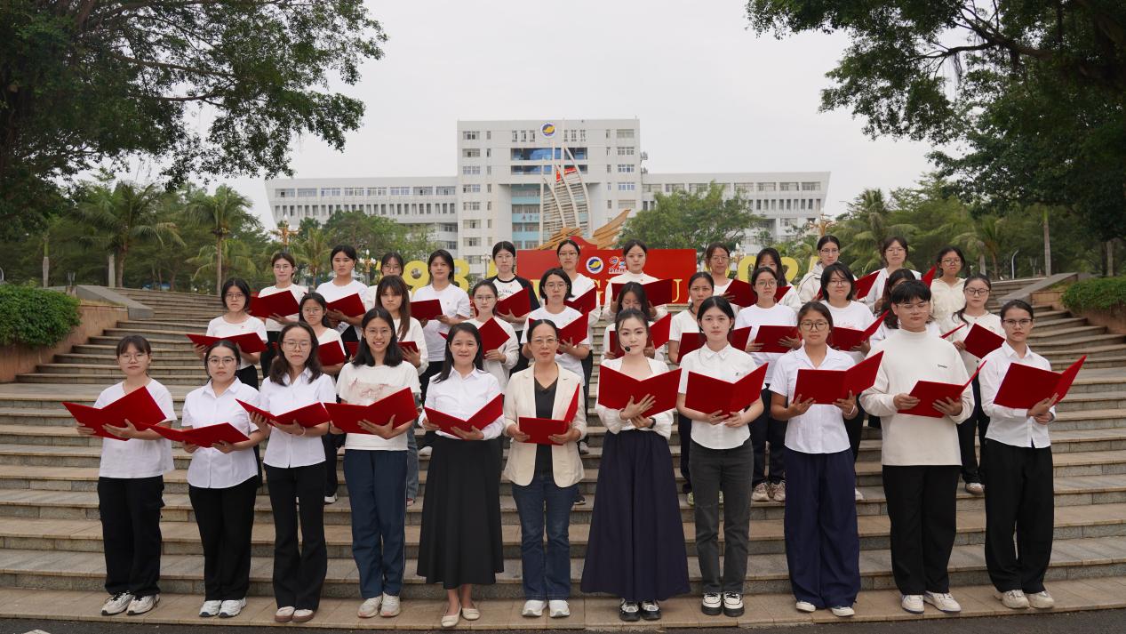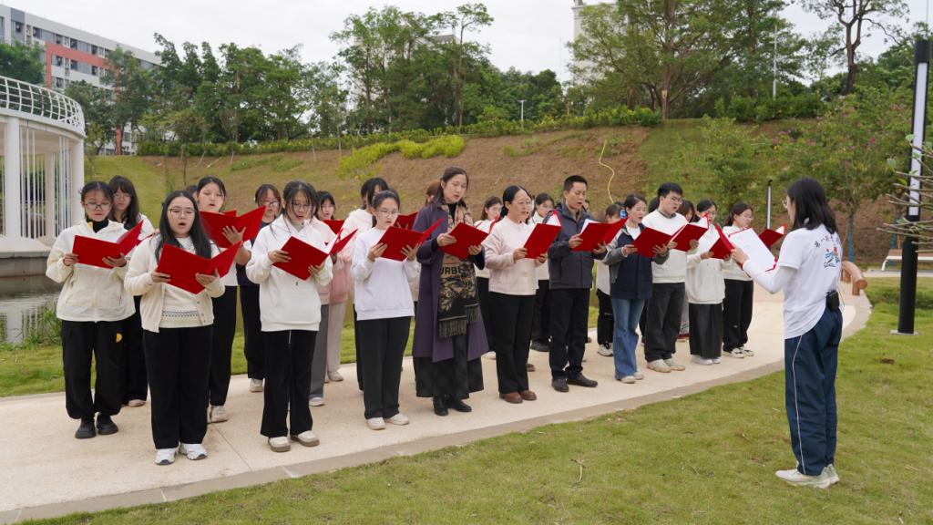 活动精心规划诵读路线,每日选取一处校园标志性景观,搭配与主题契合的经典文本,构筑起一场跨越时空的文化对话。11月17日,沁园春景观园内,《沁园春·长沙》的铿锵诵读激荡起青春意气与园林诗意;18日,海洋广场上,《大学之道》的齐诵声与南海的潮声共鸣;19日,西溪谷回响《观书有感》的哲思沉吟;20日,中心广场上传来《劝学》的谆谆教诲;21日,钟海楼前回荡《观沧海》的豪情壮志;22日,鲲鹏园和孔子文化园中体悟《师说》的师道传承;至23日,学院门前以《让青春在奉献中焕发绚丽光彩》的当代强音,将系列活动推向高潮。场景化的沉浸诵读,让参与者在行走中深切感受校园景观与中华文脉的深情对话。