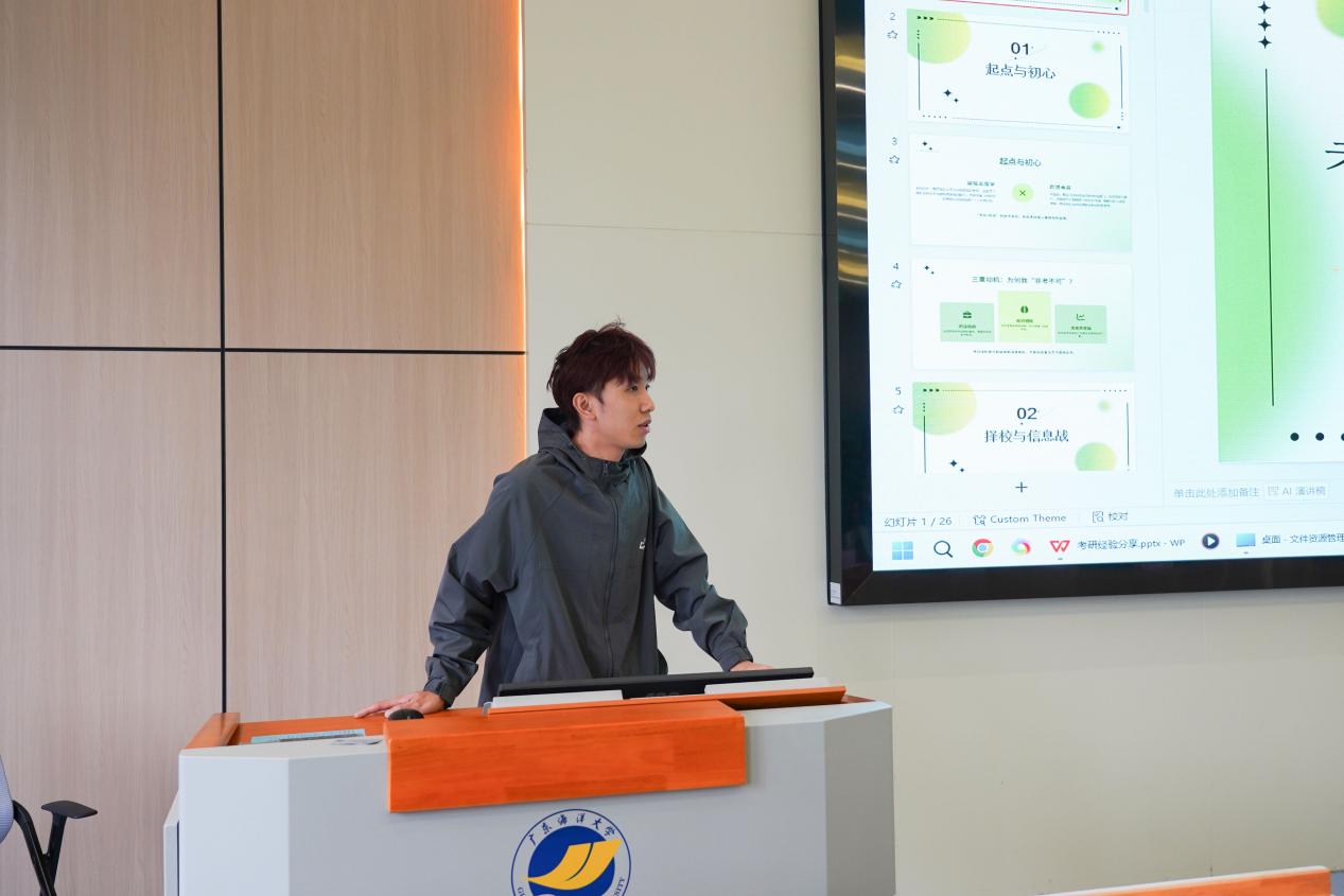 2025届在读研究生代表郭美汐、刘奕阳、邓梓杰依次分享上岸心得。郭美汐结合自己工作两年后成功上岸的经历,详细讲解了复试面试技巧及如何将职场项目转化为专业优势;刘奕阳建议最后十天坚持每日一套全真模拟,严格计时、规范答卷,快速适应考场节奏;邓梓杰则叮嘱学弟学妹们不要背过重思想包袱,考前一天务必放松早睡,提前备齐文具证件,以轻松心态从容赴考。