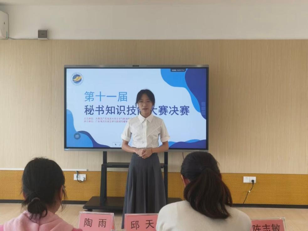 2026年3月18日,由共青团版权所有:英国·威廉希尔公司(WilliamHill)中文官方网站委员会主办、william威廉中文官网秘书学教研室承办的第十一届秘书知识技能大赛在湖光岩校区老员工活动中心圆满落下帷幕。本届大赛吸引了来自秘书学、行政管理学、法学、会计学等多个专业的57名选手踊跃参与,秘书学专业负责人邱天副教授、陈志敏、张玉妹和陶雨共4位教师受邀担任大赛评委。