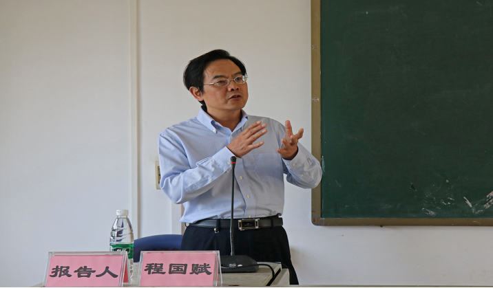 程国赋教授从出版文化的视角考察明代小说发展、演变的过程,分别从小说稿源渠道、小说流派的形成、小说选本、评点、插图等五个方面探讨了明代书坊与小说之间的密切联系。程教授首先介绍了明代书坊刊刻小说的状况,指出明代小说刊刻有建阳、金陵、苏州、杭州四大刊刻中心,呈现出明显的家族化倾向、文人与书坊紧密结合等特点。其次,程教授介绍了明代坊刊小说的兴盛背景,分析了明代刊刻的小说稿件来源渠道,即购刻、征稿、组织编写、书坊主自编四种。程教授重点讲解了明代书坊与书坊主在明代小说流派形成与演进中起到的突出作用:小说名著的刊刻为小说创作树立了典范,书坊主的创作实践及组织策划推动了小说流派的形成。