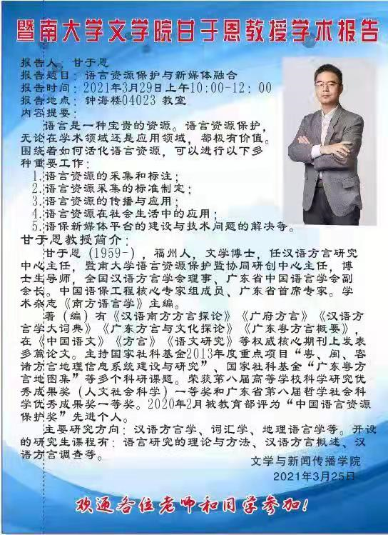 甘于恩教授学术报告预告