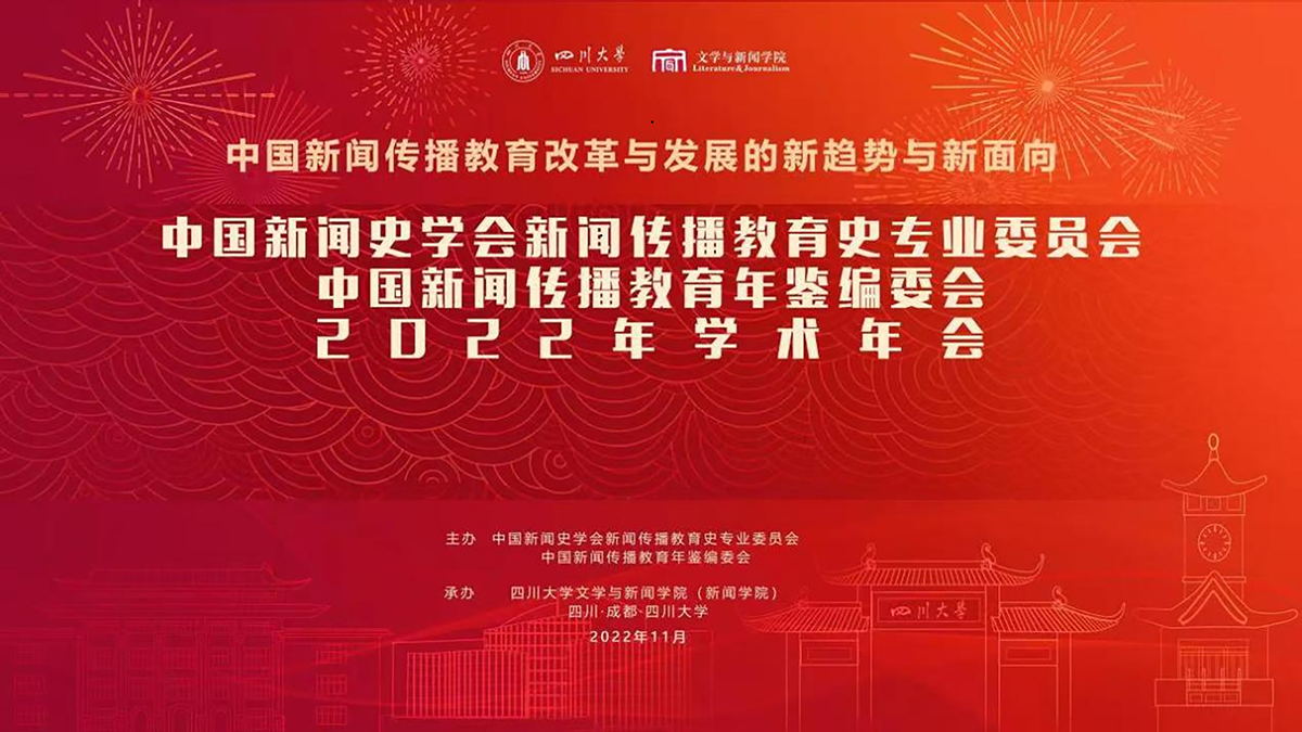 2022年11月12日,“中国新闻史学会新闻传播教育史专业委员会中国新闻传播教育年鉴编委会2022年学术年会”在“云端”举行。本次学术年会由中国新闻史学会新闻传播教育史专业委员会、中国新闻传播教育年鉴编委会主办,四川大学文学与新闻学院承办。来自全国60多所新闻院校的300多位专家学者和在校员工参加了会议。