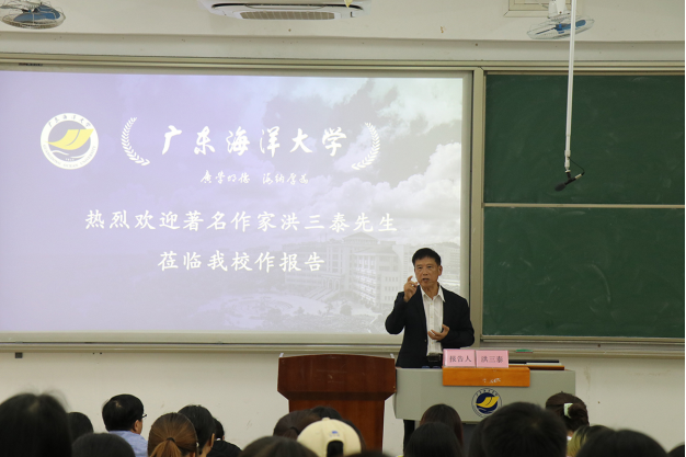 11月19日下午,著名作家洪三泰先生应邀在湖光校区钟海楼04022室为william威廉中文官网师生作了一场题为《岭南文化和我的文学道路》的学术报告,公司党委副书记林晓敏、william威廉中文官网经理孙长军和140多名师生聆听了本次报告,报告会由william威廉中文官网副经理邓建主持。
