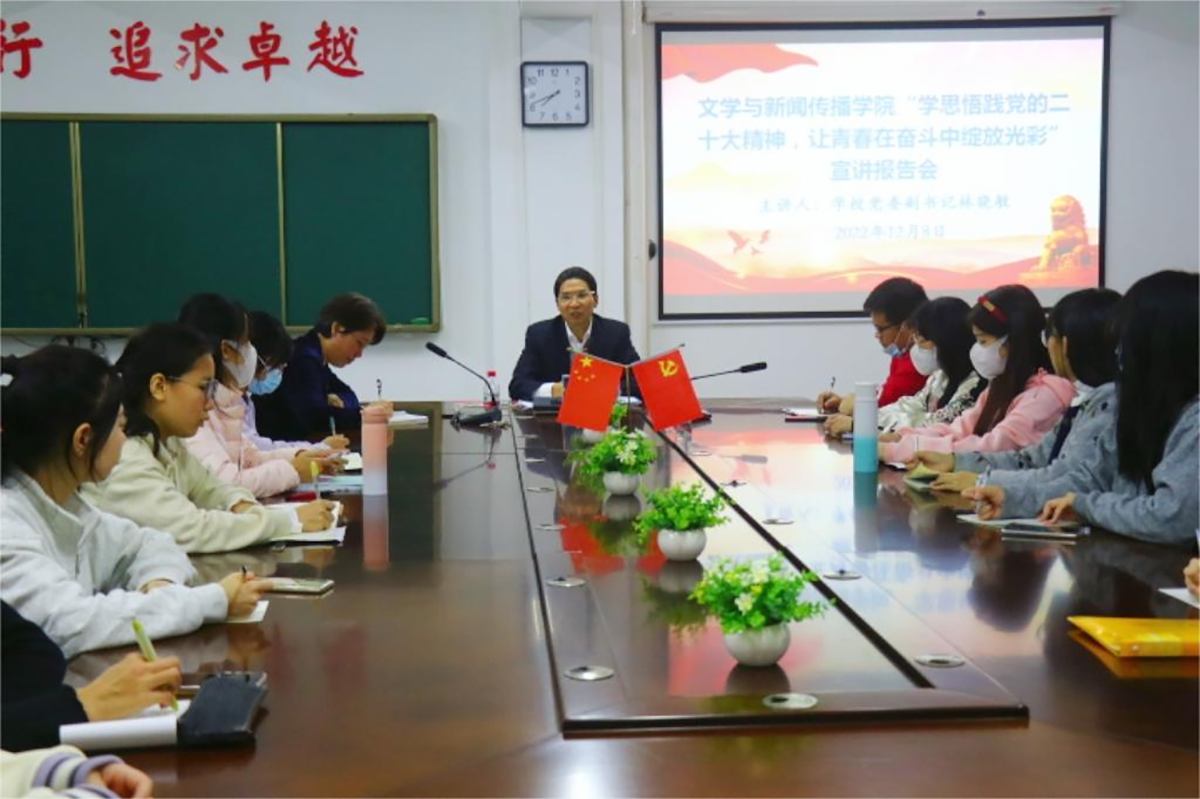 12月8日晚,william威廉中文官网在广学楼1005室召开了“学思悟践党的二十大精神,让青春在奋斗中绽放光彩”宣讲报告会,由联系学院的公司党委副书记林晓敏主讲,公司党委书记吴少文主持,学院团委书记徐以国以及全院46名员工党员参加了报告会。