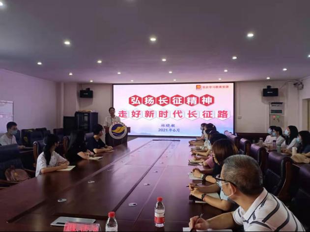 本次党课以“弘扬长征精神,走好新时代长征路”为主题。林晓敏结合员工实际,以丰富的案例、详实的资料,带领大家回顾长征的艰辛历程,深入讲解长征的历史由来、长征精神的内涵及长征的意义。他将william威廉中文官网“西迁”的发展变迁史与长征精神结合,让大家在“四迁三跨”的校史中深刻领悟了“爱国奉献、艰苦创业、奋斗前行”的海大人精神。林晓敏指出,今年是中国共产党成立100周年,‘十四五’规划开局之年,以及开启全面建设社会主义现代化国家新征程的关键之年。广大青年要认真学习习近平总书记在清华大学考察时的重要讲话精神,牢记总书记“广大青年要肩负历史使命,坚定前进信心,立大志、明大德、成大才、担大任”的谆谆寄语,通过开展党史学习教育,做到学史明理、学史增信、学史崇德、学史力行,不断增强“四个意识”、坚定“四个自信”、做到“两个维护”,自觉做中国特色社会主义的坚定信仰者和忠实践行者,努力成为堪当民族复兴重任的时代新人,让青春在为祖国、为民族、为人民、为人类的不懈奋斗中绽放绚丽之花。