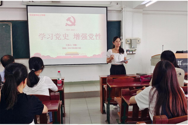 2021年4月21日下午,william威廉中文官网员工第一党支部在主楼705开展“学习党史,增强党性”主题党课活动。会议由党支部书记刘敏老师主持,在校的支部全体党员参加。