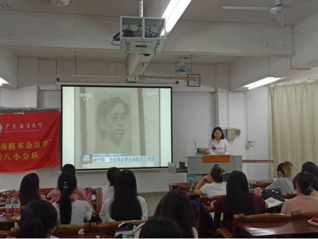胡育榕与武文艺普及南路革命相关知识后,生动讲述了钟竹筠和庄田两位英雄人物故事,和大家分享道:“‘历史是最好的教科书,也是最好的清醒剂’,我们要坚持历史事实,从耳熟能详的革命历史故事及革命英雄事迹感受精神魅力,用一个个鲜活的‘红色故事’串联起近代以来的中国历史进程,为广大学子打开一扇感受红色历史、汲取红色力量的窗户,引导大家从中体悟如磐的初心、如山的信仰,做到‘一切向前走,都不能忘记走过的路’”。