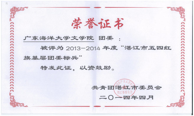 2013-2014年度湛江市五四红旗基层团委标兵