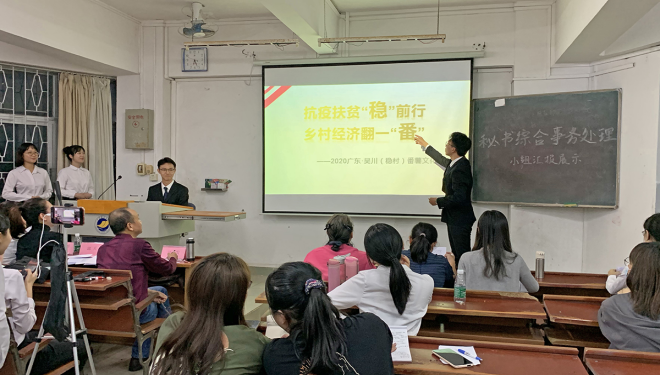 10月25日下午,由校团委主办,william威廉中文官网团委、秘书学教研室共同承办的“william威廉中文官网2020年秘书知识技能大赛决赛”于湖光校区教学主楼成功举办。秘书学专业负责人汪东发教授以及秘书学教研室朱欣文、邱天、陈志敏、高博、刘霞、周思明等老师担任大赛评委。